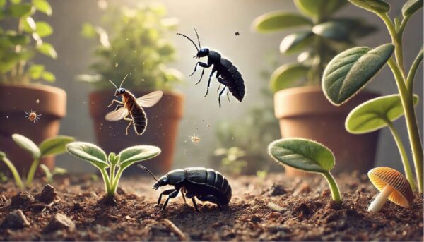 観葉植物を育てていると、黒い小さい飛ぶ虫がいつの間にか発生していることがあります。これらの虫の正体には、トビムシ・キノコバエ・シバンムシなどの種類があり、それぞれ異なる原因で発生します。特に、土の湿度が高いとキノコバエが増えやすく、乾燥した環境ではシバンムシが発生することもあります。