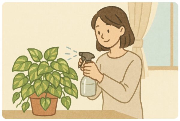 このように、霧吹きはポトスの葉を健康に保ち、結果的に株全体の元気を引き出す補助的な役割を果たします。直接的なボリュームアップには剪定や仕立てが必要ですが、葉の美しさと生育環境の向上という面では、取り入れる価値のあるケア方法です。